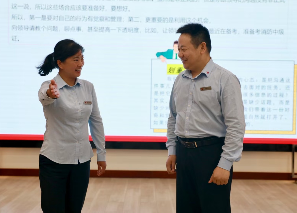 情景模拟环节将现场气氛推向高潮!学员们化身“一线管家”,在模拟项目中应对各种突发状况。机智的应对、幽默的化解,引得现场掌声与笑声不断。积分制更是点燃了团队斗志,为赢得珍贵的“成长币”,各小组摩拳擦掌、踊跃抢答,在竞技中深化了协作,在欢笑中巩固了知识。